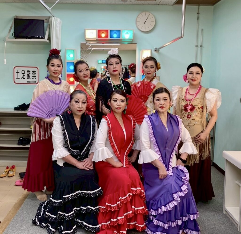 フラメンコメイクも本番までに、毎日練習したという強者もいて、初のホールイベントで既に素晴らしい仕上がりです。muy guapa !